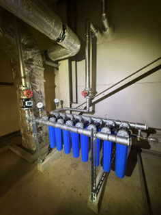 工場へのエアハン前段のチャンバー内にラジエーターを取り付け、夏場のみ地下水を供給し、実測値でエアハンへの給気が30℃外気時に19℃となっております。